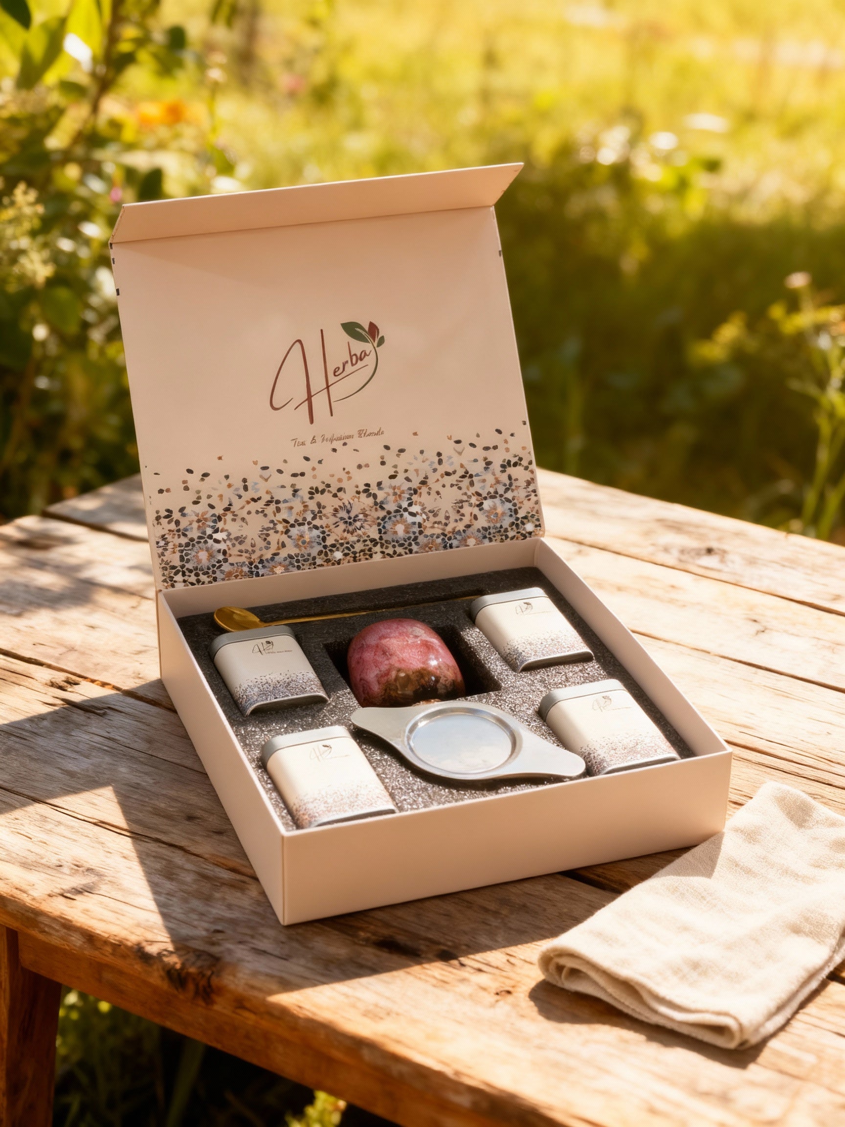 Elevate your tea experience with this luxurious gift box featuring four 30g tins of expertly curated herbal and rooibos blends. Accompanied by a 150ml ceramic cup, a stainless steel infuser, and an elegant tea spoon, this set offers everything needed for a refined tasting journey.