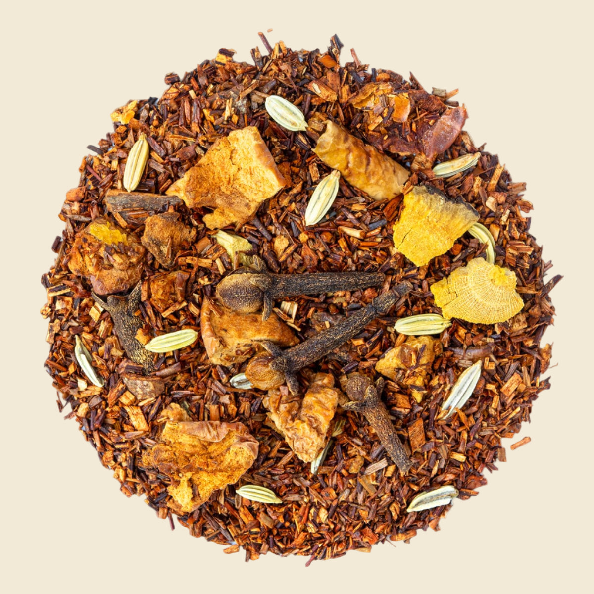 Ingredients: Rooibos natural, apple (21%), cinnamon sticks (6%), fennel, natural flavouring, clove, liquorice root.